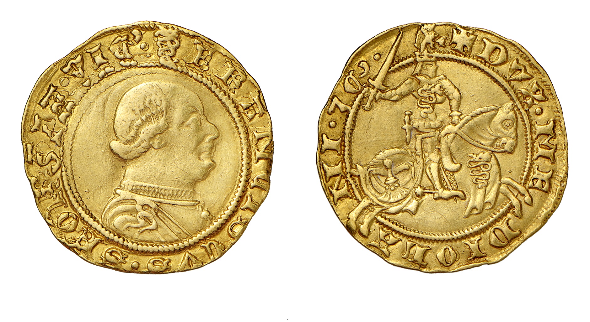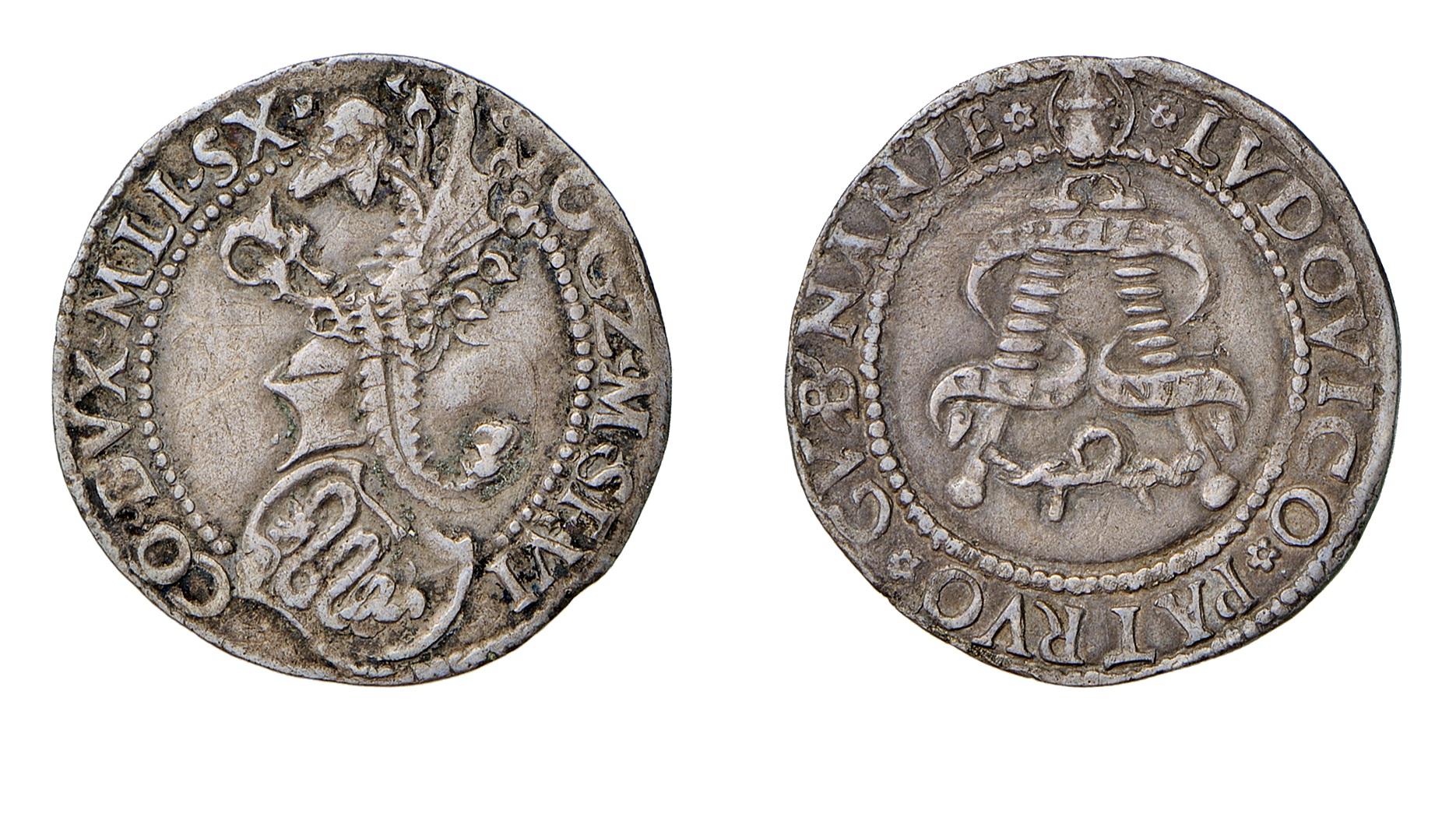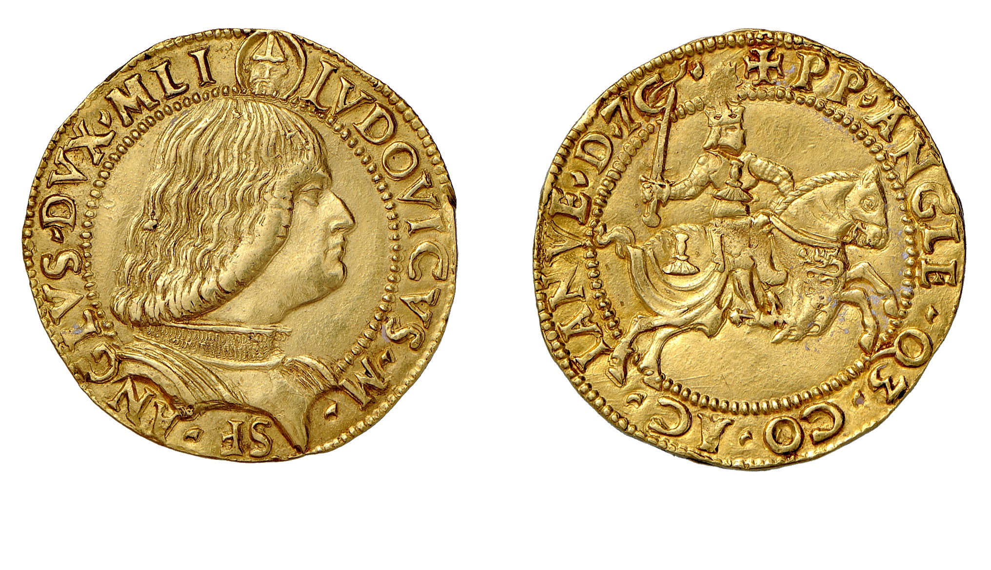 4. doppio testone, oro; D/ busto corazzato di Ludovico Maria R/ Duca a cavallo; sulla corazza e sulla gualdrappa, dietro, la scopetta