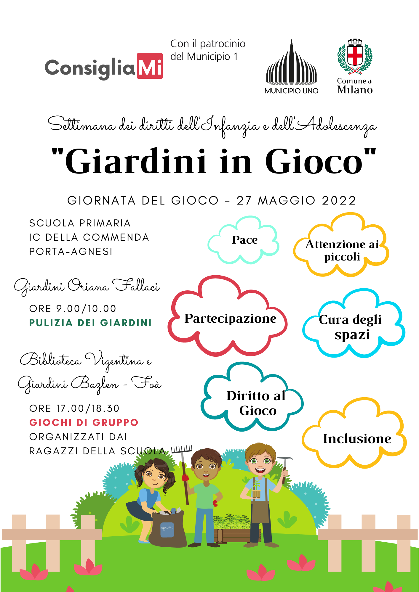Il Comune di Milano, con i Municipi, promuove il progetto ConsigliaMI: “Milano, città anche dei bambini e delle bambine, dei ragazzi e delle ragazze”, per proseguire ed arricchire l’esperienza dei Consigli di Municipio dei Ragazzi e delle Ragazze (CdMRR) avviata nel 2013 in ogni Municipio della città.