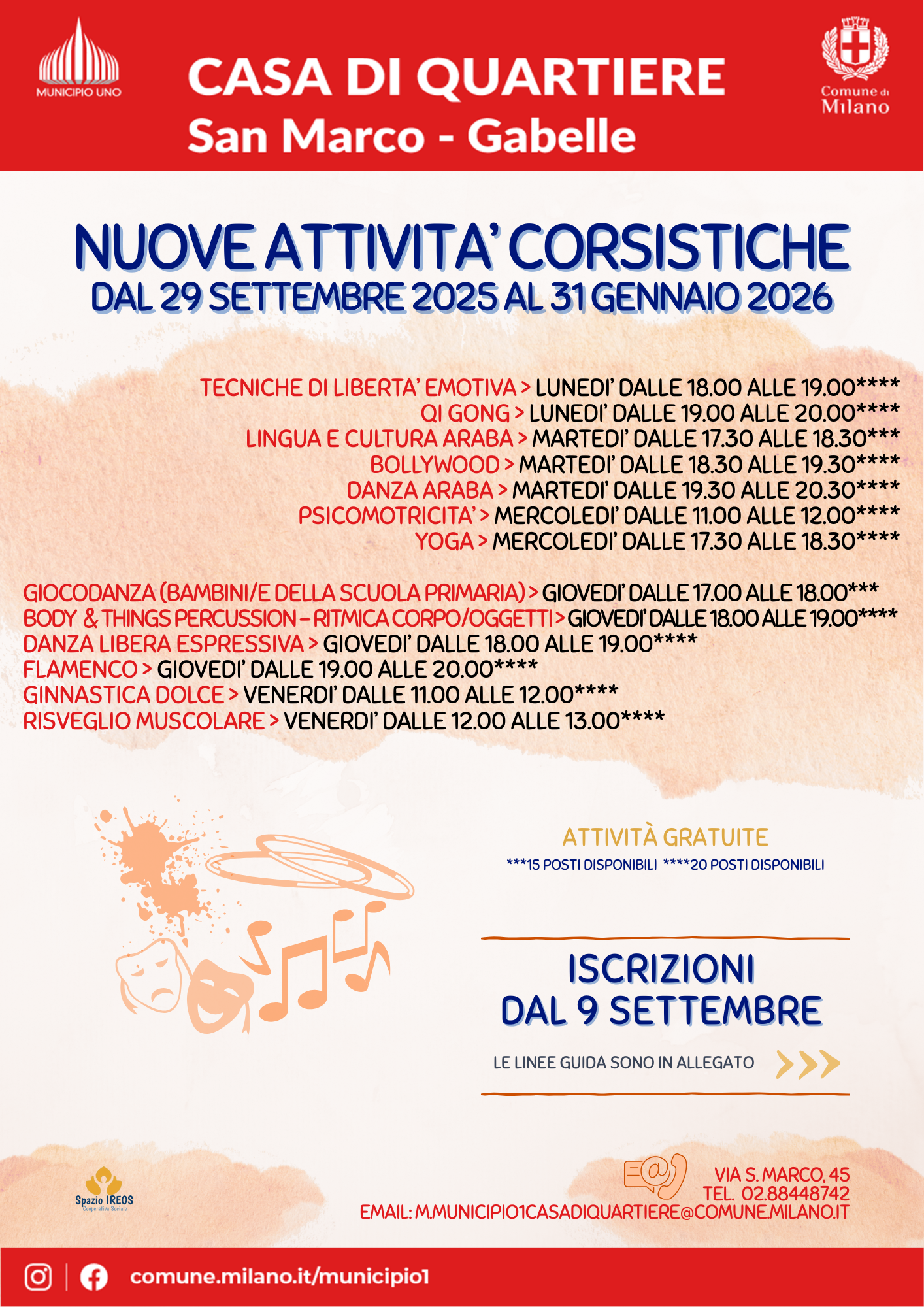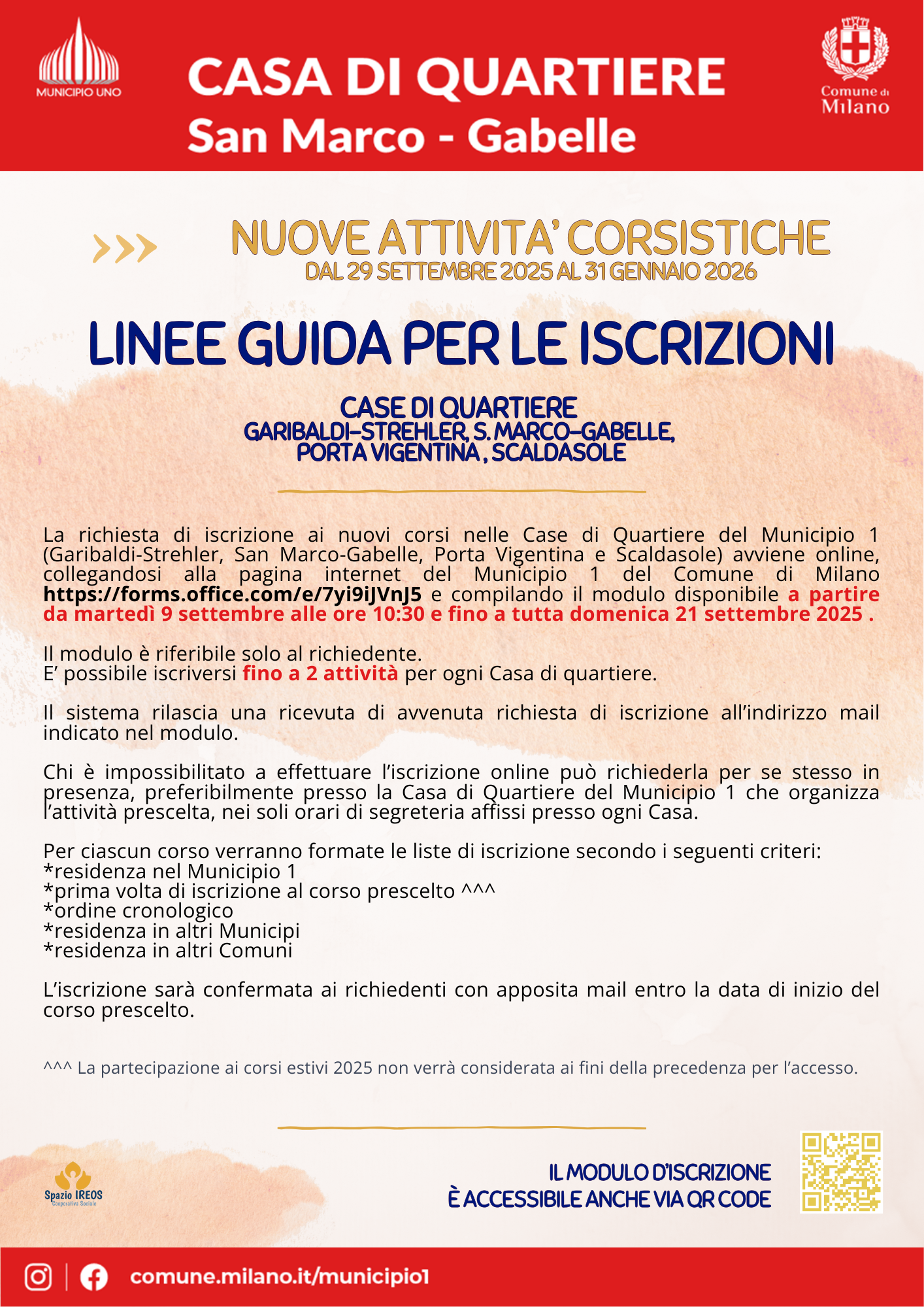 È possibile iscriversi fino a un massimo di due corsi per ciascuna Casa di Quartiere.