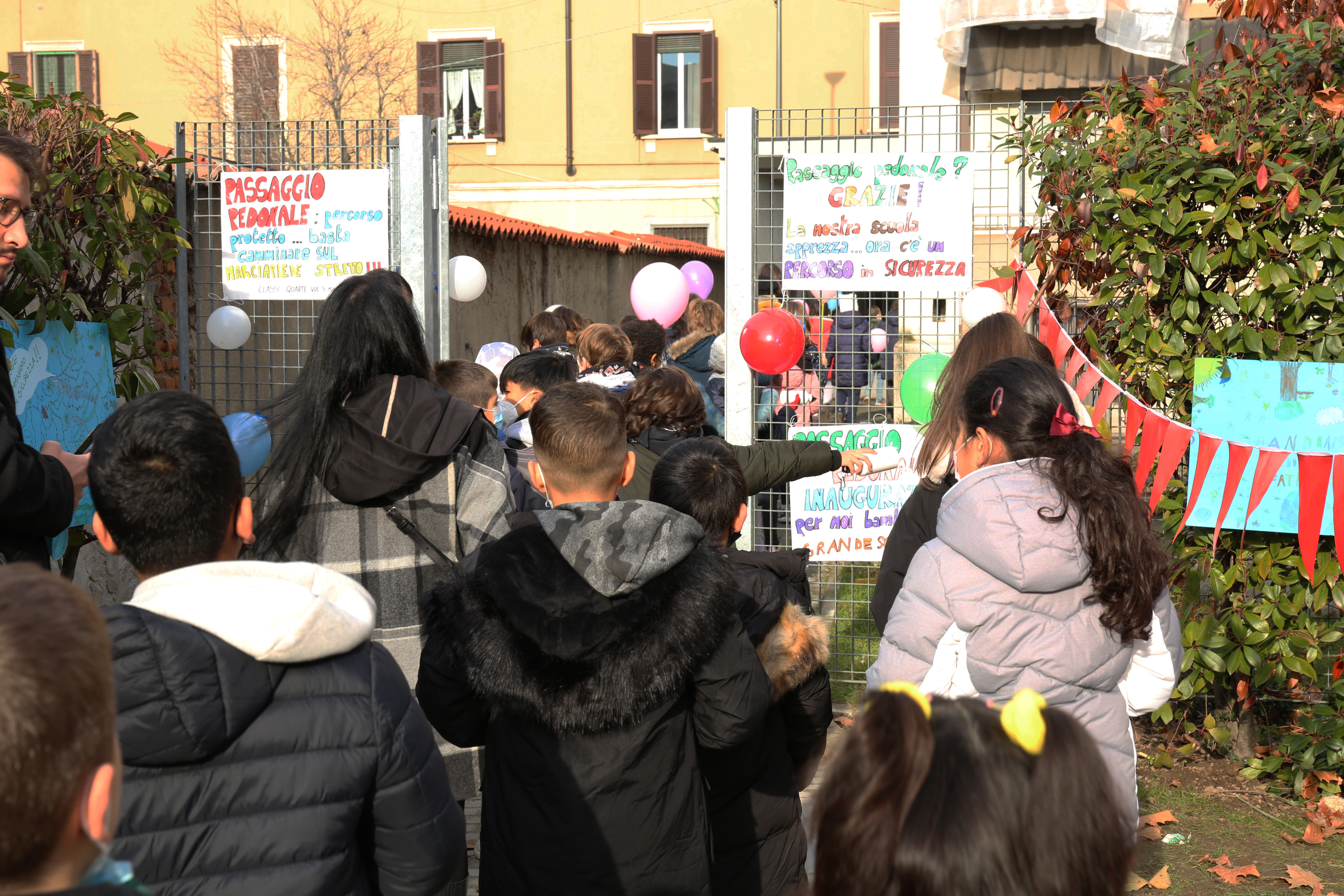 Contestualmente, è stato inaugurato il passaggio pedonale che collega la scuola di via Bottego ai Giardini, attraverso la consegna delle chiavi  per aprire e chiudere il cancello da parte della società comunale MM ai Nonni Amici, attivi con il servizio di Pedibus. Questo consentirà ai bambini che vanno a scuola a piedi di poter percorrere la strada in piena sicurezza.